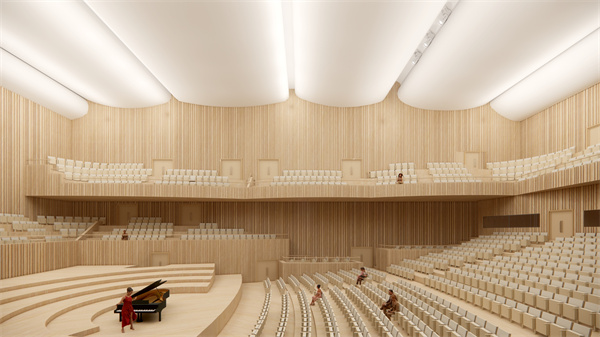 寶安工人文化宮項目選址寶安中心區新湖路與興華一路交匯處,建設用地23860平方米,總建築面積130145平方米,總投資17.53億元。整個項目以「工業?工人?工匠」為定位,地上設計12層、地下3層,包括深圳交響樂團基地用房(音樂廳、排練廳等)、職工文化活動用房(五一劇場、培訓、展覽等)、體育活動用房、職工服務中心、公園等,預計將於2024年底建成投用,將成為一體化、現代化的職工服務平台與載體,以及新時代工運事業和工會工作發展的樣板。其中,音樂廳作為寶安工人文化宮的重要功能板塊,將致力於打造成粵港澳大灣區頂級的交響樂演奏大廳和國際一流的音樂交流基地,深圳交響樂團將以此為駐點基地,為寶安建設文化高地提供有力支撐。