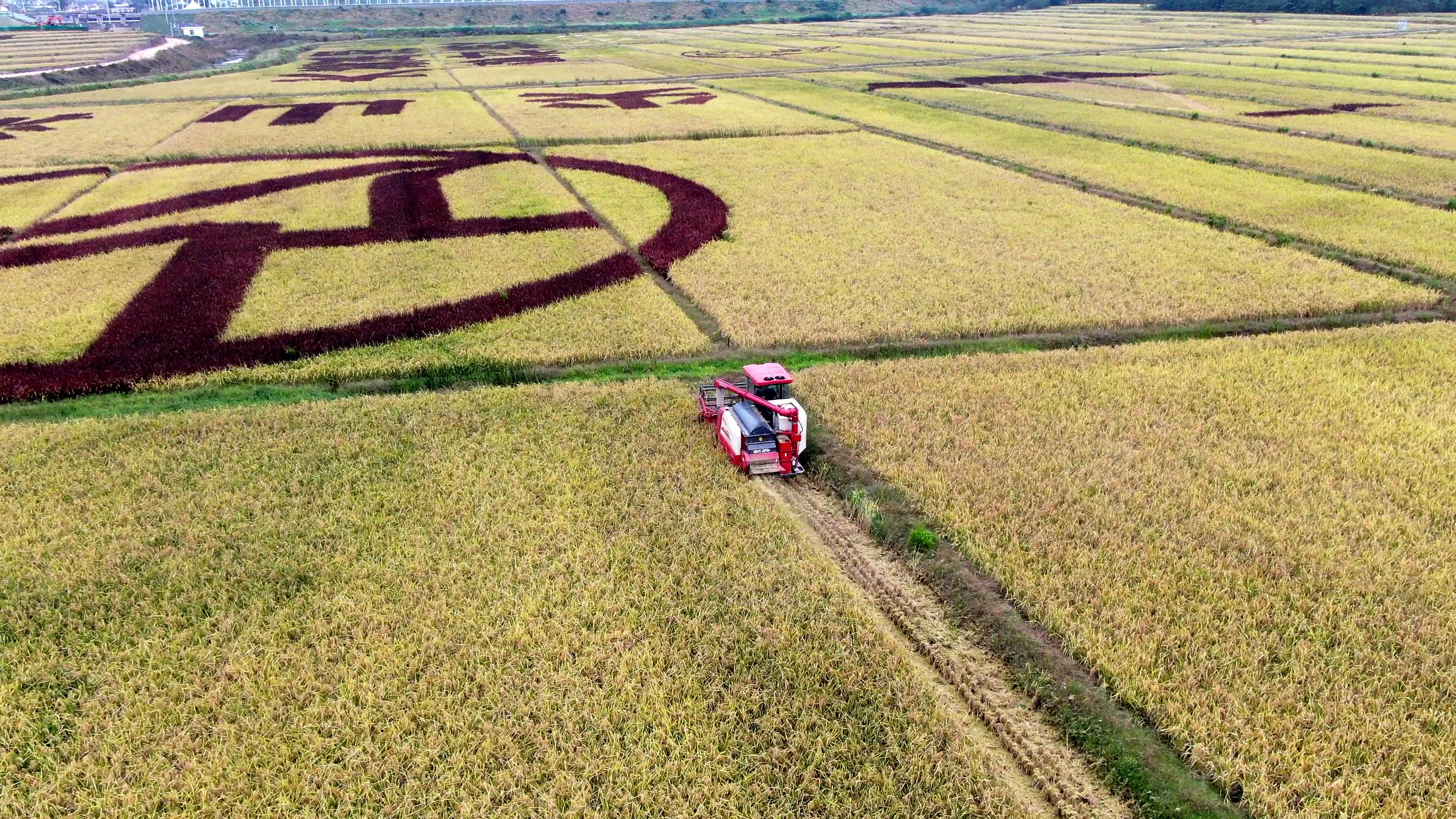 安徽省巢湖市尖山湖生態農業逸趣園有限公司副總經理魏剛說,去年他們通過和安徽省省農科院合作,引入彩色水稻種植,設計打造了這片彩色水稻畫田。彩色水稻成熟以來,廣受周圍遊客和各界人士的好評,所以今年也繼續種植彩色水稻。目前,彩色水稻田已進入收穫季,收割從10月初開始,將一直持續到月底,畝產預計在1000斤左右。當前,工人們正搶抓晴好天氣加快收割進度,為明年彩色油菜的種植做好準備工作。(嚴化文 王亮禮 龔舒斌)