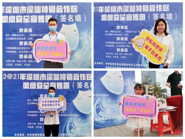 「個人信息勿泄露,安全意識存心頭。」在這兩天的線下宣傳活動現場,隨處可見各類網絡安全宣傳標語,現場還設置了深汕合作區「攜手網絡新時代 爭做深汕好網民」倡議活動簽名牆,邀請市民簽名,共同文明上網。