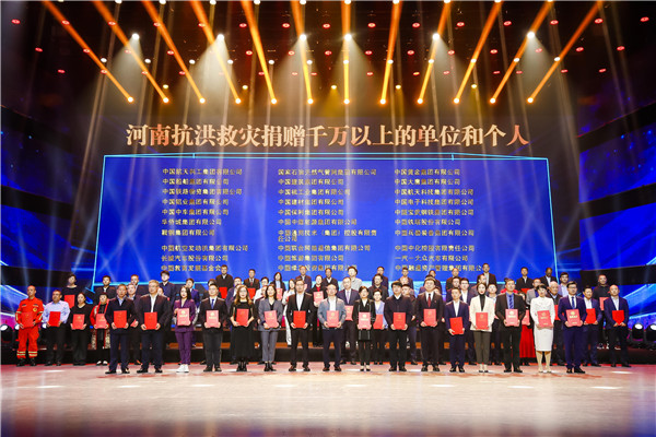 活動現場,16家為河南抗洪救災捐贈超5000萬企業領導登台,河南省委副書記孔昌生為他們特別頒發「抗洪救災馳援河南慈善捐贈突出貢獻」捐贈證書。