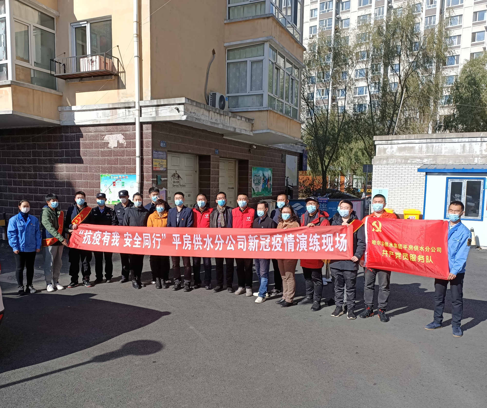 按照哈爾濱市委市政府工作部署,哈爾濱供水集團有限責任公司全面接收江南主城區二次供水設施並推行網格化管理後,為更好地發揮應急聯動機制,10 月 21 日,哈供水集團平房供水分公司聯合興建街道、哈飛建安物業、平房公安分局友協派出所等單位,共同開展了「抗疫有我 安全同行」新冠肺炎疫情防控應急聯動演練。