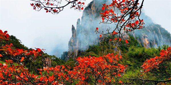 黃山的秋景美麗而短暫,隨著火紅的楓葉在枝頭搖曳,漫山的松針悄悄染上金黃的外衣,黃山的秋就這樣在山間鋪陳開來,橙黃紅綠交織漫延,放眼望去,如同置身於色彩斑斕的油畫之中,漫步山間,如在畫中游。