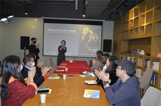 與此同時,活動中還融入了角色扮演環節,設計了情境道具——假面。在案例的情境帶入中,大家分組佩戴道具,扮演被騙者與詐騙者角色,用中文和英語模仿了詐騙雙方語言的表達,再一次演繹了詐騙案例的相關法律及心理的遞進過程。每一位活動參與者都全情演繹,生動地塑造了不同的人物形象和故事情節,活動現場歡笑生和掌聲不斷。