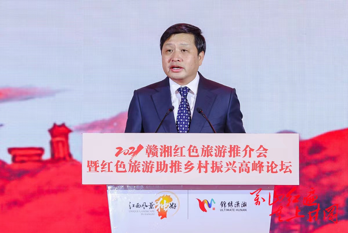 10月27日下午,2021湘贛紅色旅遊推介會暨紅色旅遊助推鄉村振興高峰論壇在井岡山舉行。江西省文化和旅遊廳黨組書記、廳長李小豹在致辭中指出,新的征程上,江西省將遵循“資源場景化、場景主題化、主題線路化”的思路,著力打造“紅色+生態農業”“紅色+休閒康養”“紅色+非遺傳承”等新業態新模式,培育100個紅色風情小鎮,建設1000個紅色主題美麗鄉村和一批高等級紅色文旅風景廊道,讓紅色旅遊賦能鄉村振興,為鄉村振興注入強勁紅色動力。