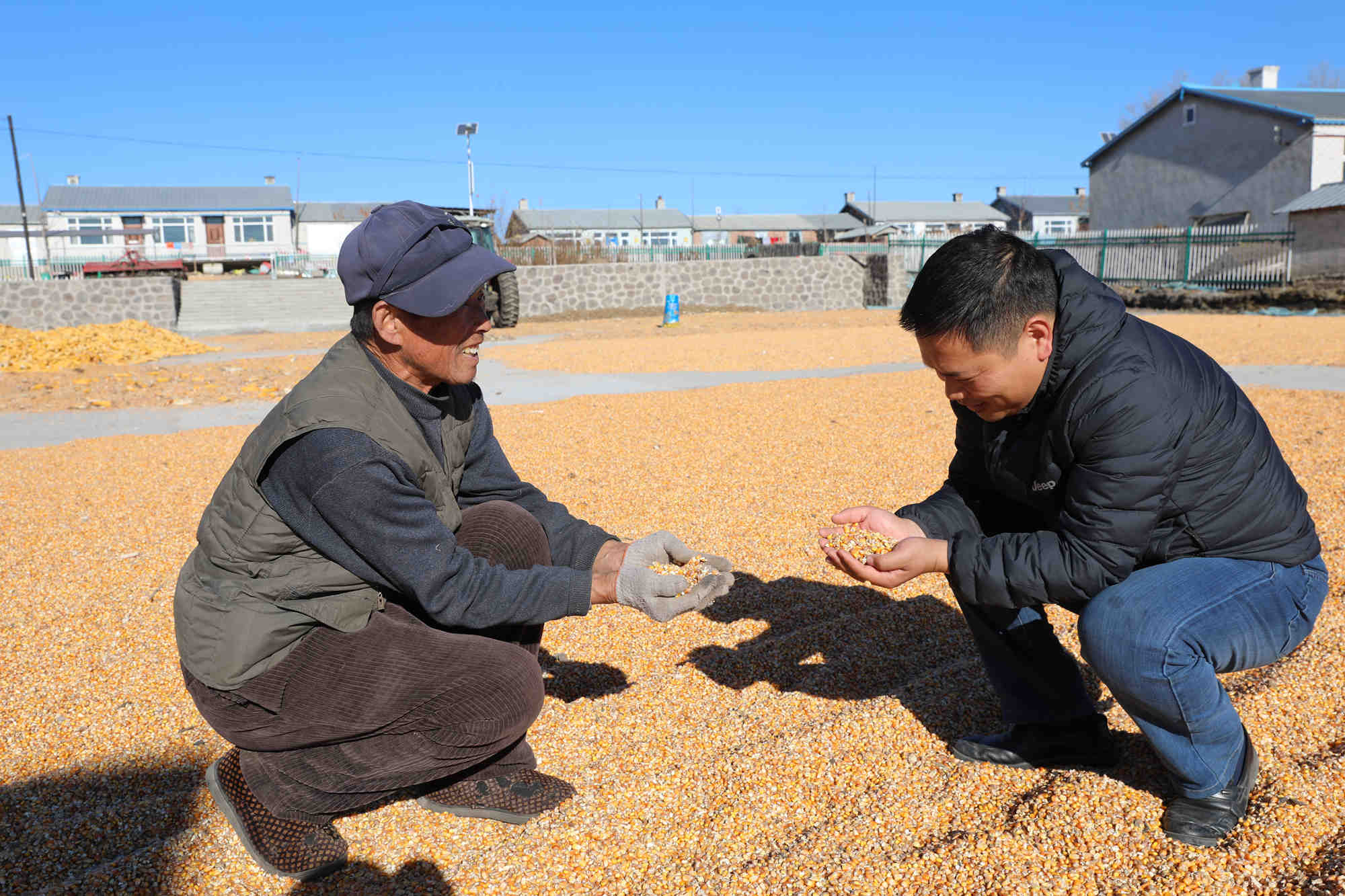 在五屯的另一處晾曬場,場院裏有序攤放着剛收穫的玉米粒。「考慮到此處晾曬場完工稍晚,而且原來此地勢低洼,這個晾曬場只存放玉米粒,為了保證晾曬場質量,重車不讓進。」中儲糧集團公司派駐上升鄉上升村第一書記尹正富正在和村民王長林查看玉米粒水分。「以前,場院小,很多家用一個,今年玉米豐收,畝產達到1300多斤沒問題,這個晾曬場整得太及時了,真的感謝中儲糧吶!」五屯村民王長林發自內心的誇讚,樸實而真誠。