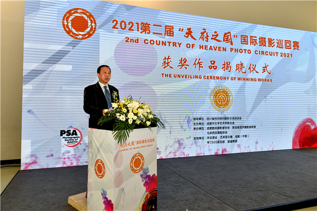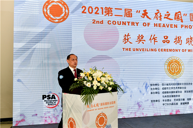 此次國際攝影巡迴賽組委會主席、成都數碼攝影家協會主席董雲輝在儀式上致辭