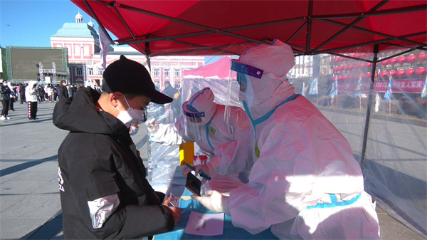 剛剛做完檢測採樣的呼瑪鎮居民董雯感慨地說:「今天一大早,我們就上廣場來排隊做核酸,雖然天氣很冷,但是我們心裏都是暖暖的,看到這麼多的醫務人員,還有志願者,社區的工作人員,他們都在這兒積極的為做核酸做工作,我們呢,作為一個普通的社區居民,我們一定要積極的配合這項工作,把這個核酸做好啊,戰勝疫情,每個人都有責任,有這個義務,呼瑪加油,我們加油,一定戰勝疫情。」