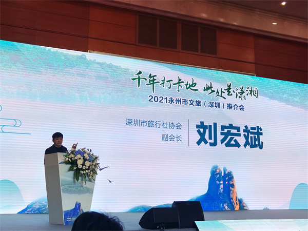 「千年打卡地 此處是瀟湘」。10月31日下午,2021永州市文旅(深圳)推介會在大灣區核心引擎城市深圳舉行。現場全面推介了位於瀟湘之源的湖南省永州市深厚的人文底蘊和豐富的旅遊資源,著重闡述了永州文旅品牌、精品旅遊線路、重點文旅專案以及招才引智政策,誠邀大灣區的遊客走進永州邂逅「詩和遠方」,誠邀企業家及文旅人才到永州投資興業、共謀發展。