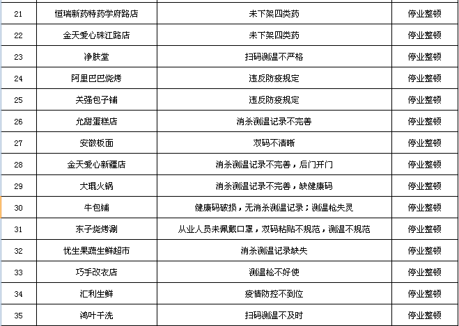 檢查中,嚴格按照市疫情防控指揮部32、33、34號公告要求,對應暫汀業市場主體暫汀業情況;在營市場主體掃碼、測溫、戴口罩「防疫三寶」執行情況;消殺、測溫記錄情況;藥店「四類藥」下架封存情況等進行檢查,積極督導各類市場主體,使其嚴格履行疫情防控主體責任,慎終如始落實落靠各項防控措施, 牢牢把住疫情防控關口。對防控措施落實不到位,屢教不改、明知故犯的商戶,一律關停整改。據香坊區疫情防控指揮部市場監管組相關人員介紹,自系列公告發佈以來,香坊區已先後出動執法人員480人次,檢查各類市場主體4353家次,停業整頓120家。