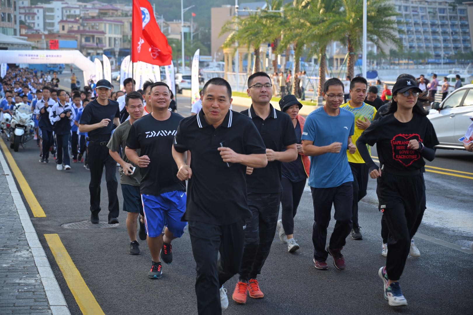 奔跑南澳,活力無限,隨風飄揚的繽紛彩旗和長跑的隊伍,為南澳增添了一道美麗的活力風景,充分展示了南澳職工幹部和市民群眾健康、和諧、積極的精神風貌,展示了南澳的濱海之美、自然之美和人文之美。