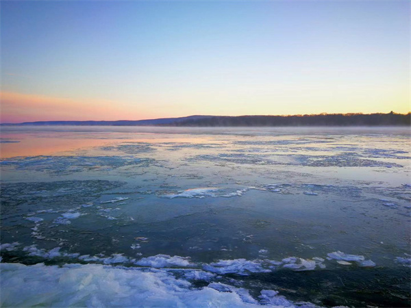 流冰是北方獨特的自然景觀,每到霜降節氣,有着371公裏邊界的黑龍江呼瑪江段便會進入流冰季節。黑龍江呼瑪段每年有兩次流冰期,兩季流冰期跑冰排的景致,各有特點,各不相同。一次是在4月末5月初,由於氣溫回升江面開始解凍,冰排順江而下,遠遠就能聽到冰與冰相互撞擊的聲音,場面十分震撼。第二次是在10月末11月初開始出現冰情,整個冰封的過程,從最初江水推着冰絮、冰塊、冰排流動,大塊大塊的冰塊順江而下,會發出咔咔的碰撞聲。隨着氣溫的逐漸降低,冰排會越凍越大,冰層也會越積越深,直至整個江面全面封凍。冬季流冰期與春季流冰期相比,流速相對緩慢,黑龍江呼瑪段整個冰凍的過程會持續20餘天。今年冬季流冰期與去年相比,時間持平。