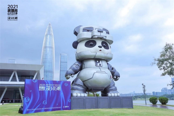 藝術家畢橫的作品《胖噠》是本次公共藝術季最大的公共藝術作品,這件高度為12米的作品將大眾喜愛的國寶大熊貓形象和潮流符號的機甲結合起來,既體現出潮流文化的趨勢,又在深層次表達了藝術家對於本土與全球,人與自然的思考。