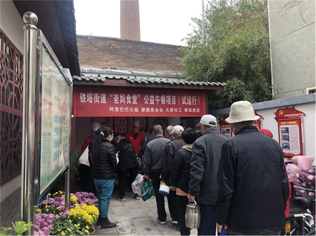 據悉,「爸媽食堂」公益項目是由愛德基金會聯合阿里巴巴公益發起,旨在為轄區失能、空巢及行動不便困境老人提供一頓公益午餐為切入點,以社工專業化服務為紐帶,滿足他們基本生活需求。同時,鼓勵志願者參與,共同關愛社區困境老人,營造老有所依的良好社區氛圍,推動發展普惠型養老服務和互助性養老。