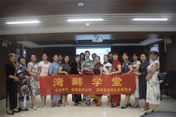 在活動結束後,觀眾們紛紛上台與李老師合影留戀,共同定格下這份關於旗袍的相遇情誼。此次為2021灣畔學堂第十八期活動,由深圳老年大學與深圳市詩書禮樂研究會共同主辦。(記者:黃鳳鳴)