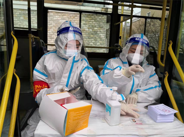 11月3日,松北區開始第二輪全員核酸檢測。在南京路街道安康社區弘基世紀城小區,哈爾濱水務投資集團下沉幹部徐明松已經在該小區卡點執勤三天了,由於該小區屬於老舊小區,老年人偏多,很多老人沒有智能手機,徐明松對這部分人群進行入門登記。一天登記下來,手已經凍僵麻木到寫不出來字。不過通過三天的入門登記,徐明松發現需要登記的老年人越來越少,在他們的幫助下,很多老人已經學會了使用智能手機掃碼。在南京路街道樂都社區錦園別墅,下沉幹部陳宇在流動檢測車上輔助醫務人員錄入採樣的身份證信息,穿上防護服就要連續工作6個小時以上。
