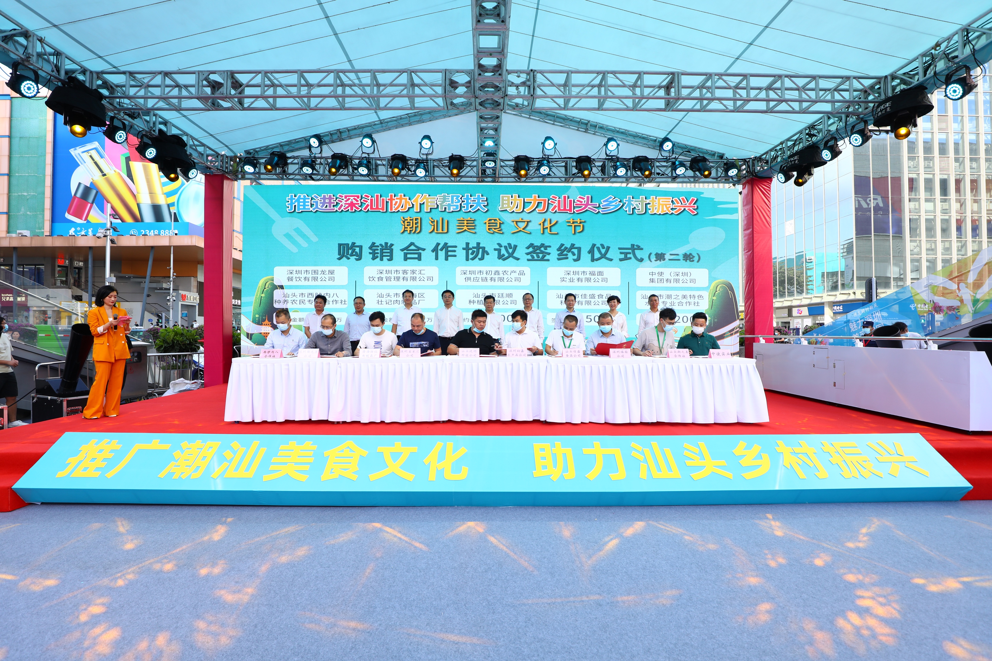 食在潮汕,味甲天下。為進一步加大對深圳新增對口幫扶地區——汕頭市的支持力度,弘揚潮汕美食文化,促進兩地潮汕美食產業產銷對接和商貿合作,11月6日下午,主題為「推進深汕協作幫扶 助力汕頭鄉村振興」的潮汕美食文化節在深圳市福田區華強北步行街正式啟動。啟動儀式當日,深圳市10家餐飲企業與汕頭市企業簽訂產品購銷框架協議,預計年採購量達6000萬元。