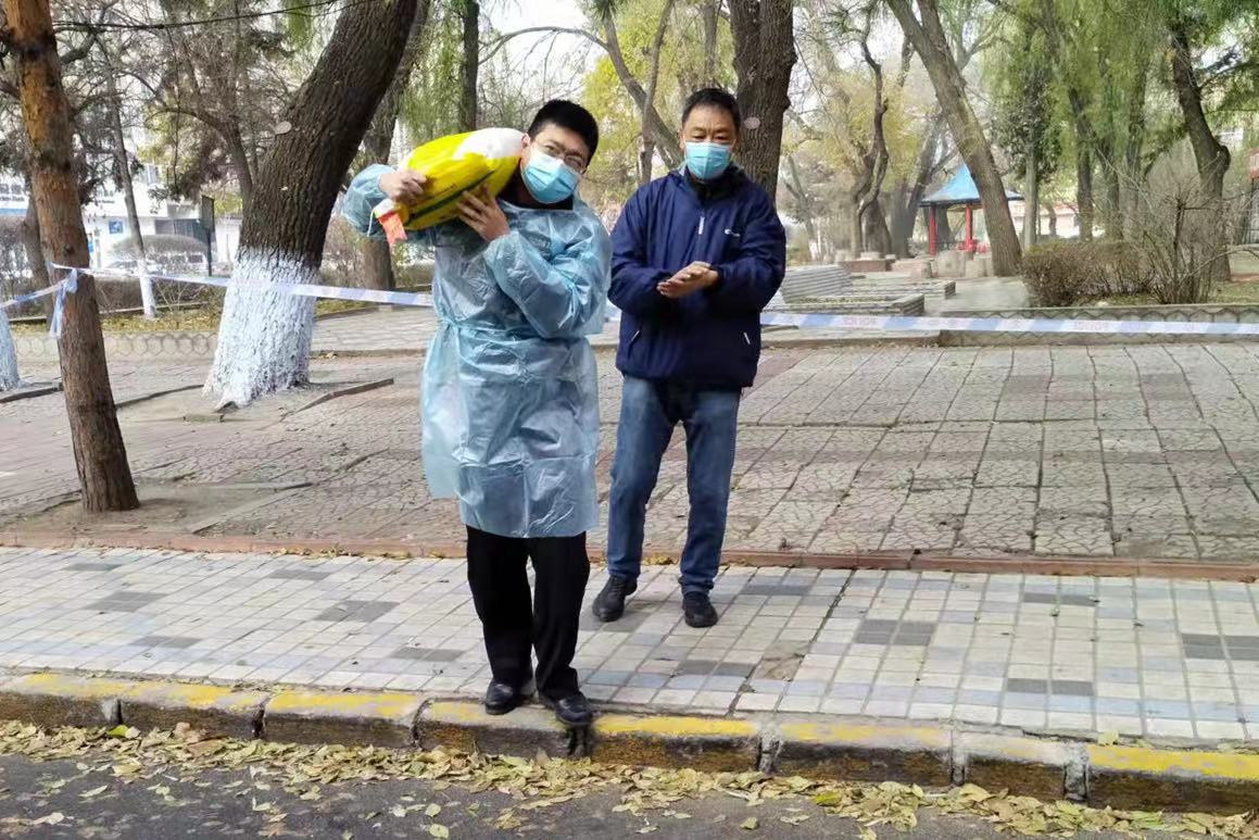 11月1日,友協街派出所三級警長王海亮在小區執勤時,遇到轄區居民張大爺求助,張大爺買了大米,聯繫快遞員送到了小區門口,由於小區封閉自己不能去取,於是向民警求助。王海亮不顧腰痛,幫助將大米取回並扛到六樓張大爺家中。11月4日上午,刑事技術中隊教導員王松在卡點執勤時,幫助年逾七旬的老兩口將大米送上樓後,在他們不住的感謝聲中返回崗位。