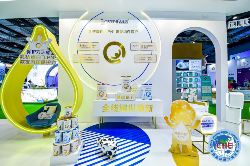 今年4月剛煥新上市的合生元星耀系列嬰幼兒配方奶粉也璀璨亮相進博會。作為乳橋蛋白研究全球領導者,合生元堅持自然與科研智慧結合的力量。此次進博會,合生元帶來的合生元派星奶粉,蘊含乳橋蛋白LPN,並擁有SN-2 PLUS親和脂肪技術。乳橋蛋白LPN作為乳汁中的免疫活性成分,能增加寶寶體內保護細胞比例,減少60%不適因數,體溫異常情況減少,比乳鐵蛋白珍稀4倍,由內而外激發寶寶的內在保護力。