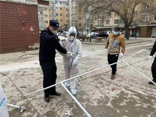 5名支援民警到位後,積極配合社區工作人員維護核酸檢測秩序,避免人員聚集。在管控小區內進行巡邏,及時勸阻或制止違反疫情防控公告行為。配合社區搭建移動帳篷,為核酸檢測工作人員提供良好工作環境。截止目前,累計勸阻聚集人員130餘人,調解居民鄰里糾紛2件。