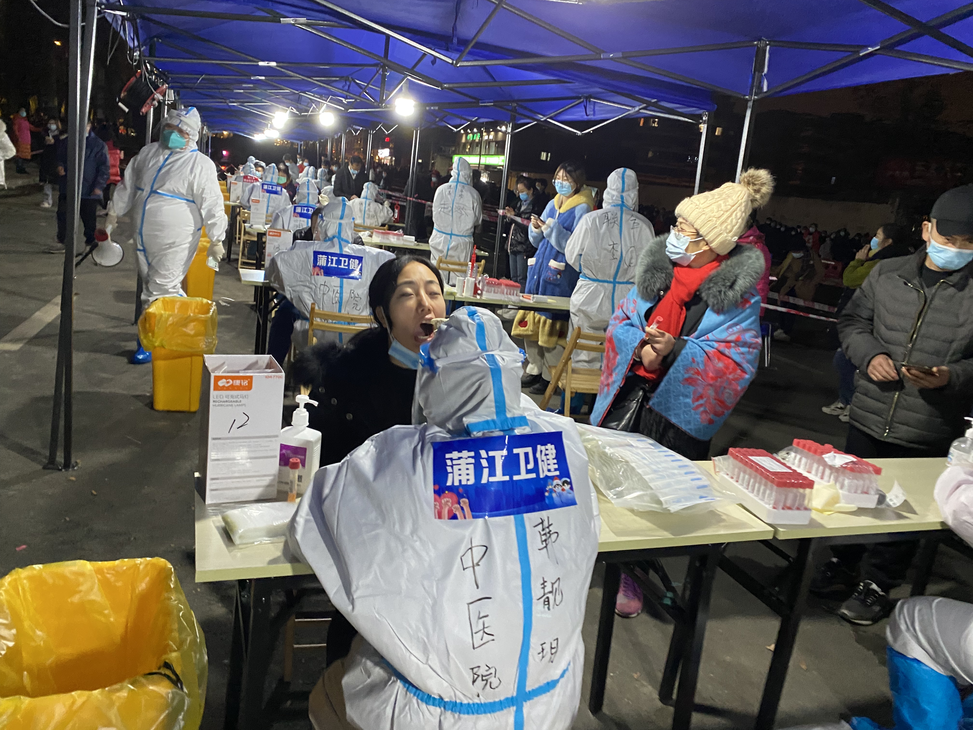 「做核酸了,做核酸了!」這幾天,成華區、錦江區等地多小區居民都會在夜晚被陣陣喇叭叫醒,連夜排隊通宵核酸檢測。「守住綠碼、共同防疫」成為大家的心聲。11月8日18時起,成都市根據近期疫情形勢,在成華區及周邊重點區域啟動了更大規模的核酸檢測。9日凌晨1時許,記者所在的小區大門處燈火通明。在社區工作人員和現場醫護人員的指引下,小區居民分樓棟、分單元依次有序排隊等待核酸檢測。