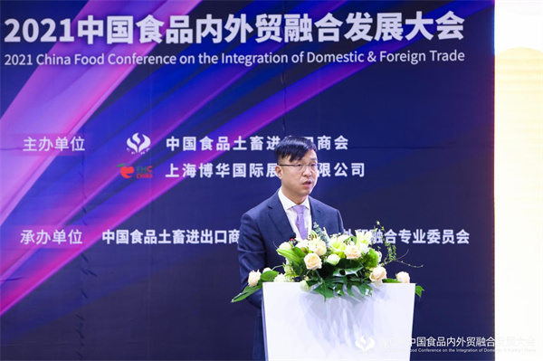 11月9日,由中國食品土畜進出口商會主辦的2021中國食品內外貿融合發展大會,與FHC上海環球食品展同期舉辦。浙江省土產畜產進出口集團有限公司作為食土商會副會長單位、內外貿融合專委會發起成員單位受邀參會。