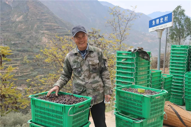 在武都區漢王鎮朱塄坎村,隨處可見油橄欖果採收場景,田間地頭一派豐收的景象。