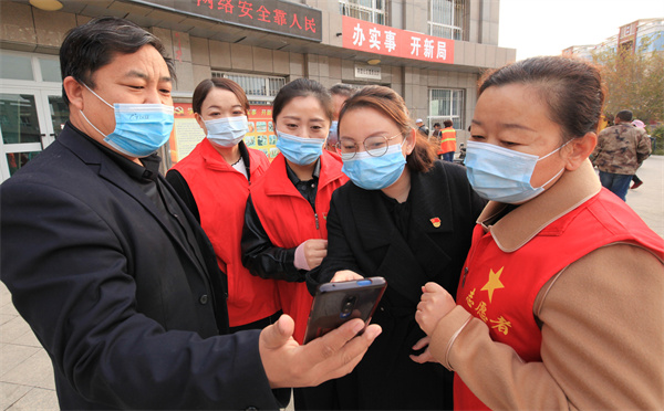 荊楚社區黨支部書記在向雙河市政公司第一黨支部黨員志願者分享「我為群眾辦實事」實踐活動微視頻