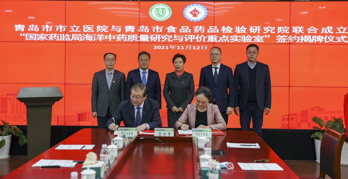 據悉,2021年2月,青島市食品藥品檢驗研究院「國家藥監局海洋中藥質量研究與評價重點實驗室」獲批運行,是全國唯一的海洋中藥領域特色重點實驗室。實驗室整合搭建了一支60餘人的高水平、國際化的研發和運營團隊,旨在結合國家海洋經濟發展戰略和需求,圍繞國內外海洋中藥的研究熱點、難點和前沿,解決我國海洋中藥目前存在的關鍵問題,為實現海洋中藥的靶向性和有效性監管及質量控制提供技術支撐體系和創新平台。為推動海洋中藥臨床試驗研究,參與相關領域的指南和標準制定,同年5月,青島市食品藥品檢驗研究院聯合青島市市立醫院依託「國家藥監局海洋中藥質量研究與評價重點實驗室」共同申報APEC國際臨床多中心聯合實驗室並獲得批准。本次簽約儀式標誌着「國家藥監局海洋中藥質量研究與評價重點實驗室聯合實驗室」正式啟動。