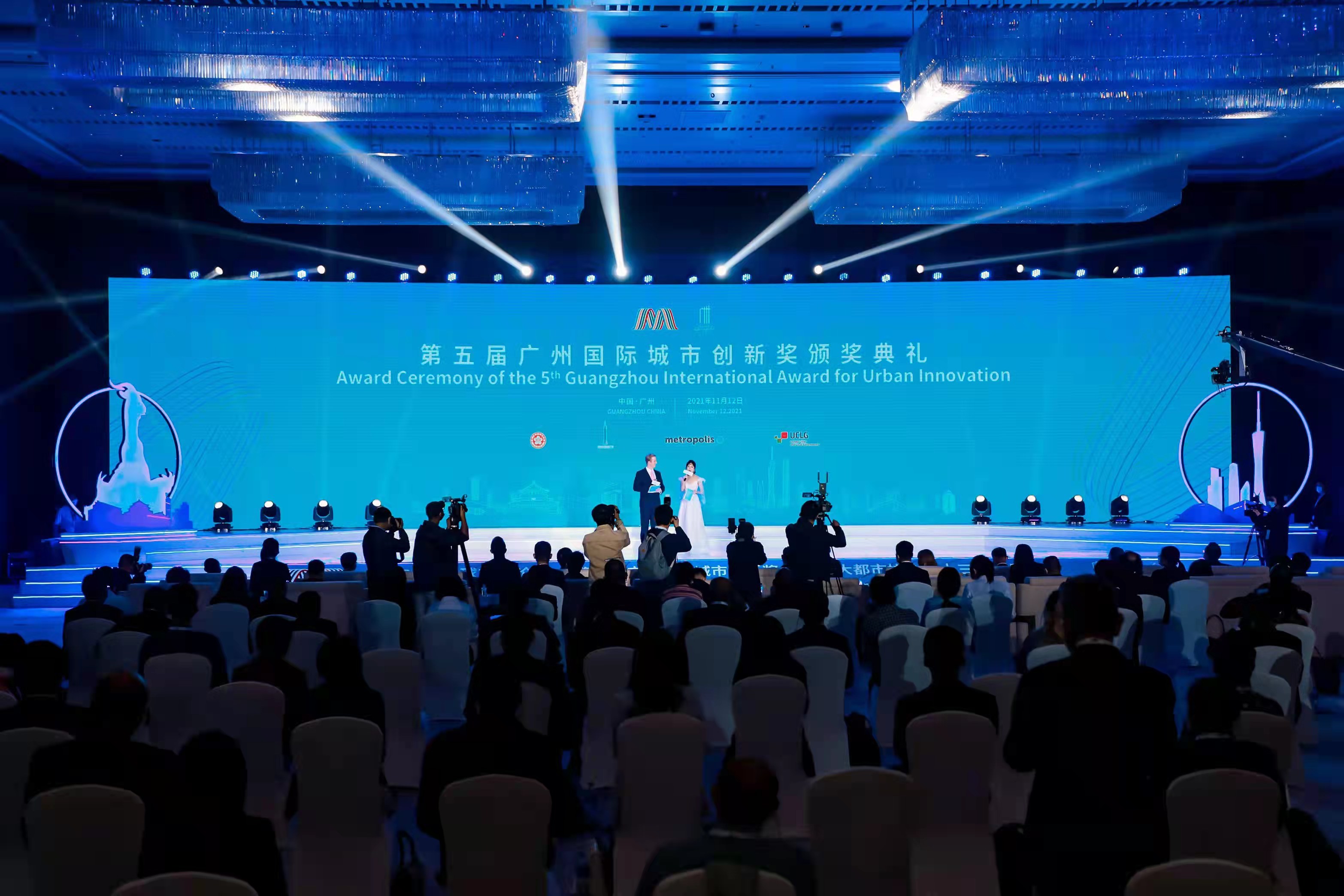 11月12日晚,第五屆廣州國際城市創新獎(簡稱「廣州獎」)頒獎典禮暨2021年全球市長論壇及世界大都市協會第十三屆世界大會閉幕式在廣州越秀國際會議中心以線上線下融合方式舉行。中國重慶、黎巴嫩丹尼區、厄瓜多爾基多、奧地利維也納、塞內加爾聖路易斯等5個城市,從60個國家和地區175個城市的273個項目中脫穎而出,榮膺第五屆廣州獎,印度奧里薩邦摘得本屆「網絡人氣城市」獎。