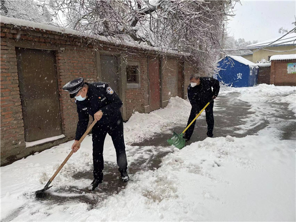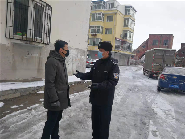 巡邏中,他及時勸返小區內遛狗、聚集人員,遇到不理解、不配合的群眾,他總是曉之以理、動之以情,不厭其煩地反覆解釋說明。一天下來,嘴唇乾了、嗓子啞了,但他的工作熱情始終沒有減少。一次,發現封閉鐵門鐵絲被人擰斷,他便找來鎖頭把門鎖牢,確保了管控小區的安全。面臨極端降溫降雪天氣,他頂着刺骨的寒風,為小區居民通道清掃冰雪。