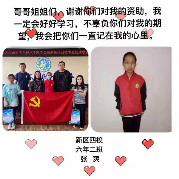 生命科學與技術學院黨委對資助貧困學生工作高度重視,相繼組織全體教師支部和學生支部對困難小學生幫扶,通過電話、微信、見面交流等了解受資助學生的生活情況與學習狀態。每年的六一兒童節和國慶節期間,學院師生黨員都會來到新區第四學校開展資助幫扶,至今持續九年開展兩輪幫扶資助活動,共計幫扶了14名學生。其中本科生第一黨支部幫扶了4名學生,第一輪資助中的2名學生已順利畢業升入中學學習,目前資助的第二輪學生已上六年級了。九年曆程,學院資助新區第四學校志願服務活動早已形成優良傳統。進一步鍛煉了學生黨員的綜合素質,發揮了共產黨員先進性和大學生服務社會的使命,為他們未來走向社會打下良好的基礎,切實將學習教育成效轉化為實實在在為群眾服務的行動。(裴振萍 王琳)