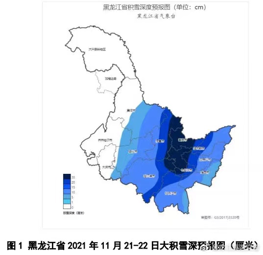 21日:伊春南部、哈爾濱、佳木斯西部、雙鴨山西部、七台河、雞西西部、牡丹江西部有大雪,其中哈爾濱東部、佳木斯西部、七台河、雞西西部、牡丹江西部局地有暴雪;雞西東部、牡丹江東部有中雨夾雪,其它大部地區有小到中雪(圖2)。