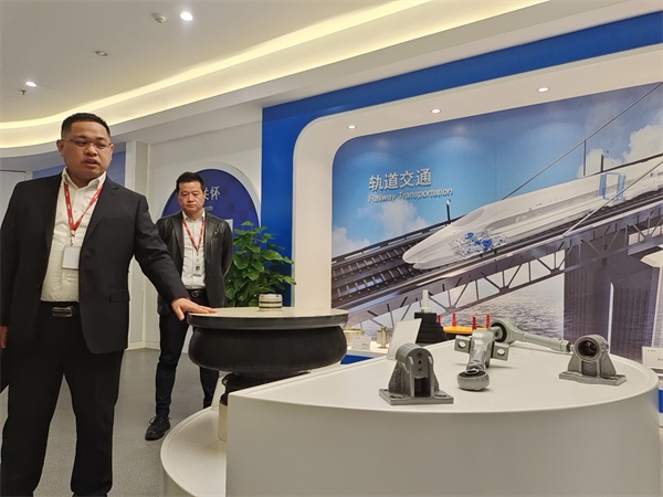 走進A股上市企業——株洲時代新材料科技股份有限公司展廳,具有國際領先水準的各類汽車、軌道、橋樑等的配套部件琳琅滿目。公司副總經理榮繼剛接受採訪時表示,公司現為中國中車股份有限公司一級子公司,在軌道交通領域有強大的自主研發和生產製造能力。以高分子材料研究及工程化應用為核心,形成了減振技術、降噪技術、輕量化技術、絕緣技術、抗震技術、熱控技術等核心技術。軌道交通產品從車輛減振到線路、橋樑、工程建築減隔震,再到車體輕量化、阻燃隔熱內飾產品,多元化研發生產。作為本次參展的企業之一,時代新材多達20餘種產品在現場亮相,包含空氣彈簧、風道、碳纖維扭杆等。