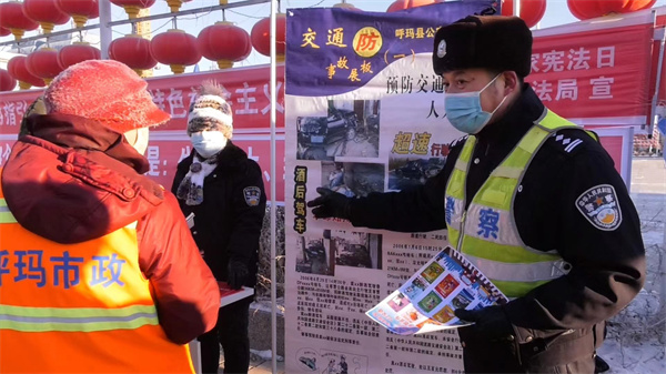 12月2日是第十個「全國交通安全日」,呼瑪縣以此為契機,組織公安交警大隊、教育局、司法局、交通運輸局、共青團、應急管理局等相關單位,以實際行動貫徹落實十九屆六中全會精神,圍繞「守法規知禮讓,安全文明出行」為主題的交通安全宣傳教育活動,全力維護邊城呼瑪安全、暢通、文明、有序的道路交通環境。