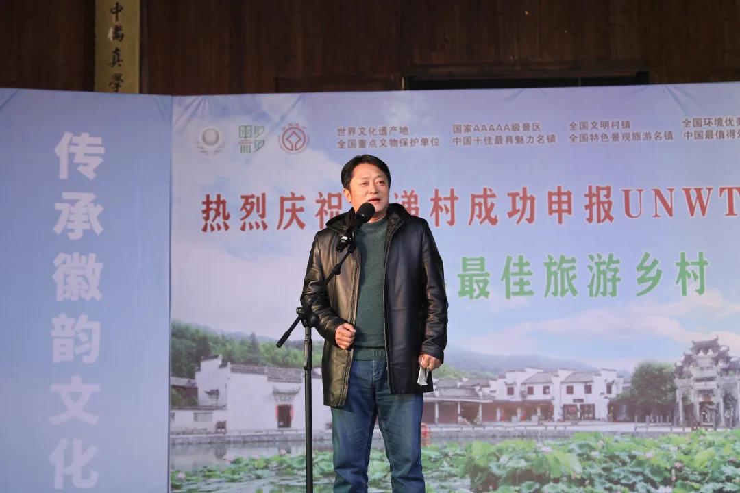 12月3日,黟縣縣委常委、副縣長吳小勝在西遞村慶祝活動上致辭