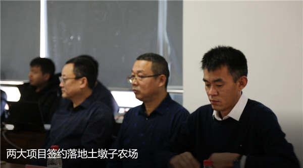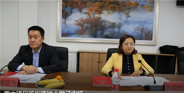 土墩子農場黨委常委、副場長王永明(右)進行與新進兩家企業簽約儀式