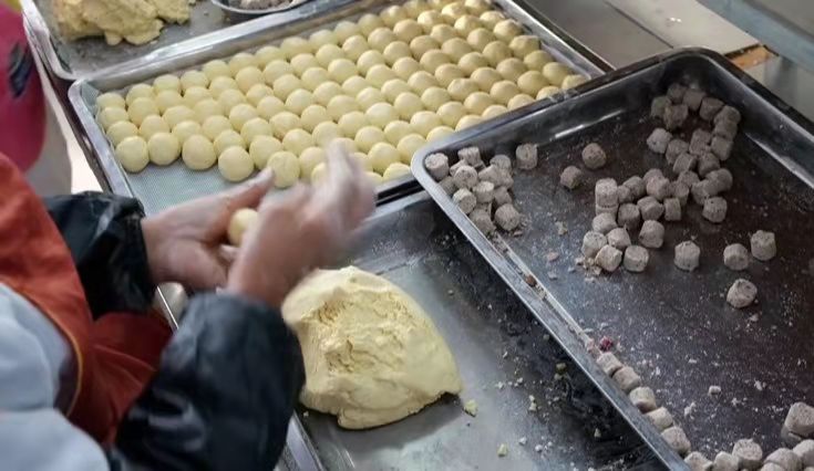 黃米麵、紅豆餡,面膠布鋪在屜上,一雙雙巧手忙不迭……在黑龍江省依安縣中心鎮豐收村張鼎鼎粘豆包加工廠中,工人們正在為源源不斷的訂單忙的熱火朝天。