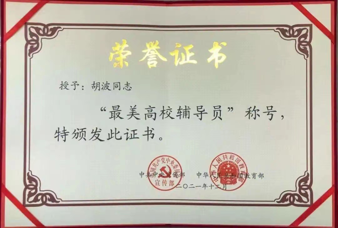 據介紹,胡波從事輔導員工作以來,先後榮獲全國輔導員素質能力大賽一等獎、河南省高校輔導員年度人物,主持教育部人文社會科學研究一般項目(高校輔導員研究專項)、河南省高校思想政治工作精品項目。