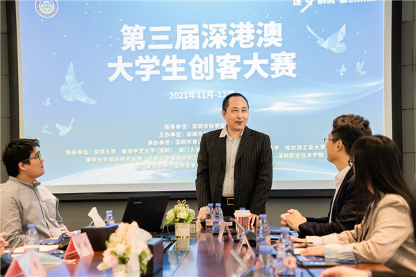 2021年12月10日下午,由深圳市科學技術協會指導、深圳市科技交流服務中心主辦的第三屆深港澳大學生創客大賽在前海深港基金小鎮路演中心精彩落幕。來自深圳大學、南方科技大學、香港中文大學(深圳)清華大學深圳研究生院、北京大學深圳研究生院、哈爾濱工業大學(深圳)、深圳市創客協會等眾多高校、協會共50支隊伍報名參與本次活動,最終選挑選出10支創客團隊參與本次線下決賽路演。第三屆深港澳大學生創客大賽圍繞“逐夢鵬城,智創未來”為主題,通過創客作品展示,搭建創客與資本、創客與市場的溝通平臺。