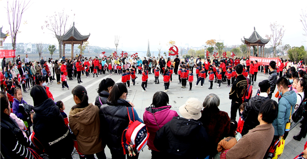 歙縣黨建廣場活力四射,市民聚在一起唱紅歌、跳廣場舞,太極愛好者在《我愛你中國》樂曲伴奏中慢步習練24式太極,武術愛好者在教練引領下習練氣功《八段錦》,周邊幼稚園的小朋友在廣場空曠場地做遊戲、演唱《我愛北京天安門》,跆拳道表演引來眾多觀眾,黨建廣場氛圍好活動多。