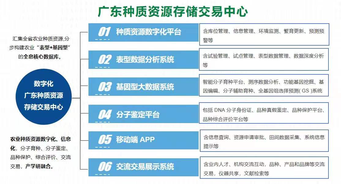 廣東種質資源存儲交易中心功能模塊展示。