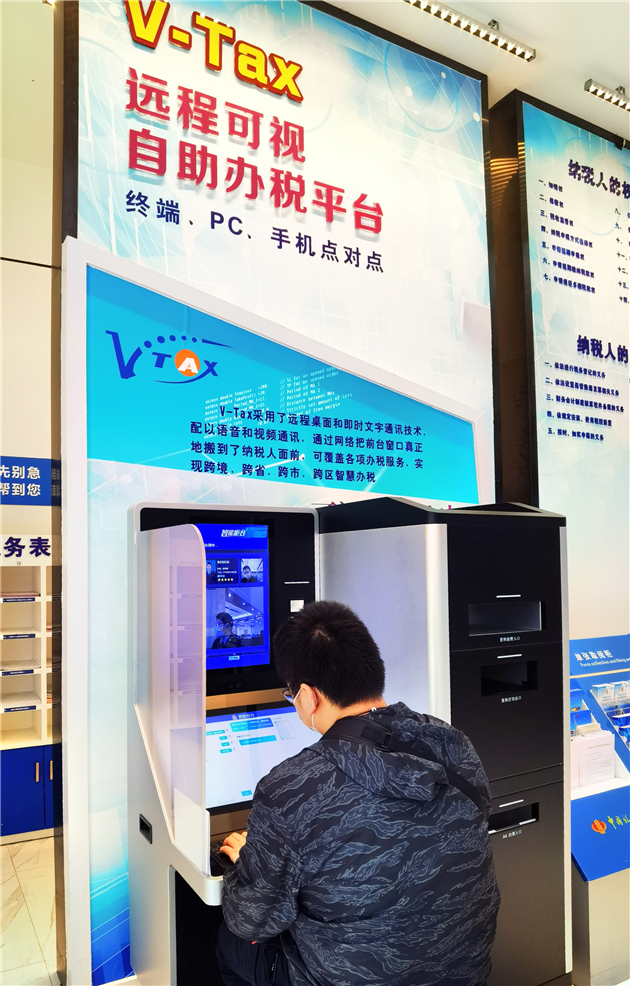橫琴稅局服務大廳內,納稅人正在使用V-Tax遠程可視自助辦稅系統辦稅