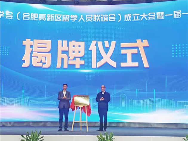 安徽省委統戰部副部長王琦(左)與合肥市委統戰部副部長喻禮勝為合肥高新區歐美同學會(合肥高新區留學人員聯誼會)揭牌