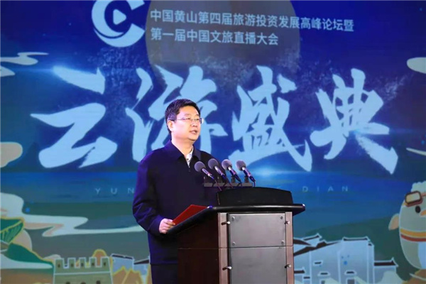 12月16日,美麗的黃山腳下、新安江畔,中國黃山第四屆旅遊投資發展高峰論壇暨第一屆中國文旅直播大會“雲遊盛典”如約而至。黃山市委副書記、市長孫勇,中國旅遊景區協會會長姚軍,安徽文旅廳二級巡視員許建民,黃山市委副書記、宣傳部部長範榮暉,市政協副主席、景區黨工委書記、管委會副主任吳文達,中國旅遊景區協會秘書長霍建軍,景區黨工委委員、黃山旅遊發展股份有限公司黨委書記、董事長章德輝等出席。