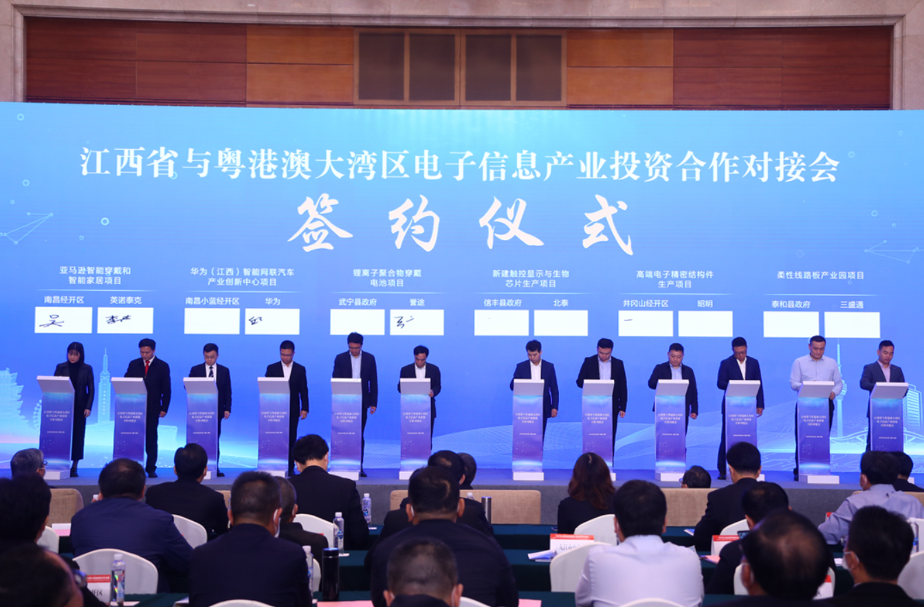 任珠峯表示,粵港澳大灣區是中國經濟最具活力的地區,尤其深圳作為中國改革開放的前沿窗口,各類人才匯聚、各種資源彙集、各方要素匯合,電子信息產業產值佔全國近六分之一的份額,可以説,在中國電子信息產業的快速發展中起着重要的引領作用。江西一直非常注重與深圳企業尤其是電子信息企業的交流合作,近年來,越來越多的深圳電子信息優秀企業關注江西、看好江西、投資江西,比如歐菲光、兆馳等先後落户紮根,在實現自身發展的同時,也成為推動江西電子信息產業加速發展的巨大動力。