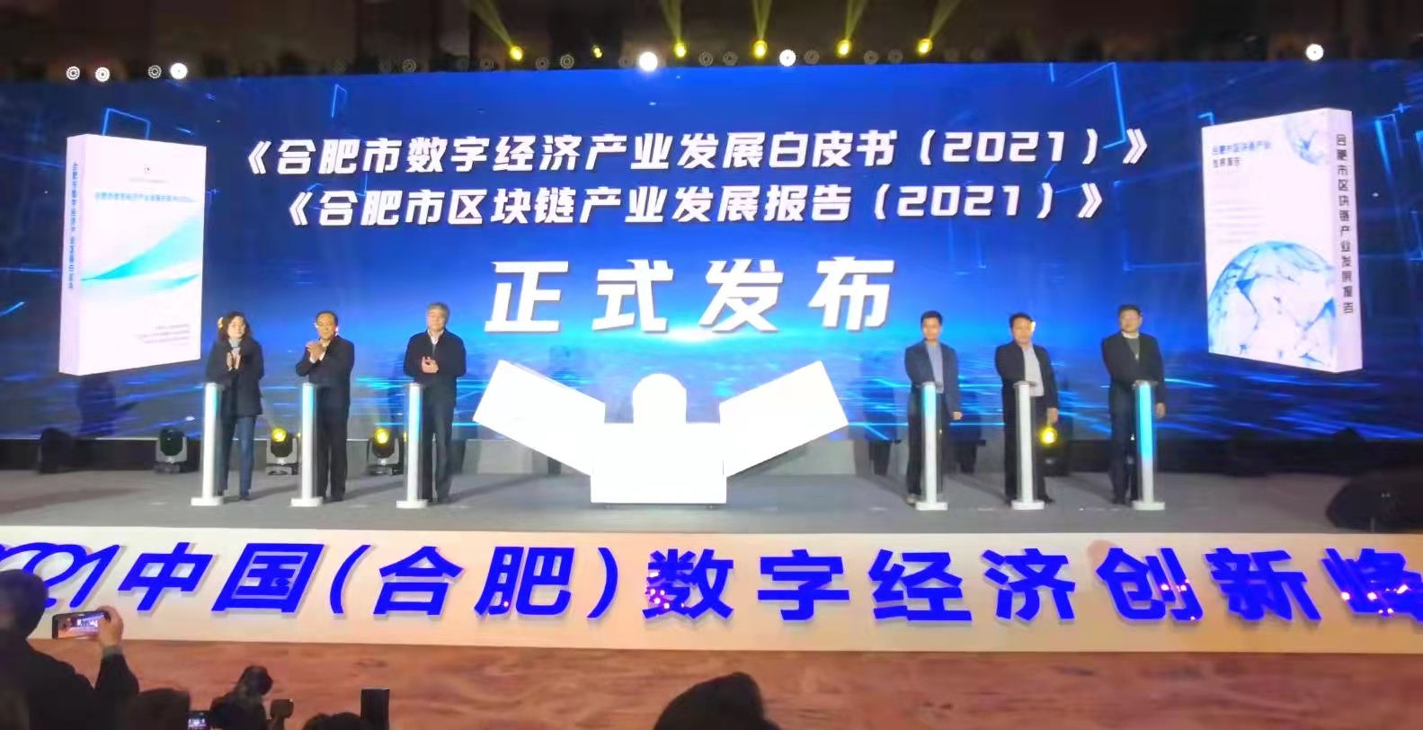 《合肥市數字經濟產業發展白皮書(2021)》《合肥市區塊鏈產業發展報告(2021)》正式發佈(孫軍/攝)
