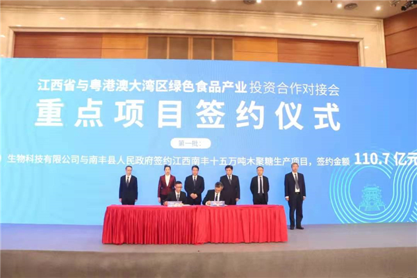 此次對接會以「攜手贛鄱綠色發展 共創鄉村振興樣板之地」為主題,持續唱響江西綠色生態農業「主旋律」,現場簽約農業重點投資合作項目19個,簽約總額達到210.7億元,涉及農產品精深加工、休閑民宿、生豬養殖、優質稻產業、生態循環農業、設施農業、高科技農業等,涵蓋了綠色食品產業鏈九大環節多個領域。其中有5個項目簽約金額在10億元以上,最大的是中聯信(湖南)生物科技有限公司與南豐縣人民政府簽約的江西南豐十五萬噸木聚糖生產項目,簽約金額達110.7億元。