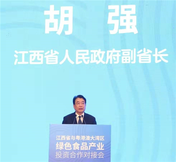 胡強在致辭中指出,江西農業底蘊深厚、貢獻突出,是全國13個糧食主產省之一,是全國重要的農產品生產基地和供應基地,稻穀產量位居全國第3位,柑橘產量位居全國第5位,水產品產量位居內陸省第2位,生豬存欄量位居全國第10位,外調糧穩居全國前3位。江西農業特色鮮明、綠色為本,擁有一流的水、一流的山、一流的空氣,全省綠色有機地理標誌農產品3894個,其中有機農產品總數位居全國第4位,今年,江西與農業農村部啟動共建江西綠色有機農產品示範基地試點省。江西農業蓄勢待發、前景廣闊,先後出台了糧食、生豬、蔬菜、牛羊、漁業、富硒農業、食用菌、家禽等政策文件,初步構建了現代農業發展「四梁八柱」政策體系;實施綠色食品產業鏈鏈長制,加快建設全省冷鏈物流骨幹網絡,打通「最後一公里」。