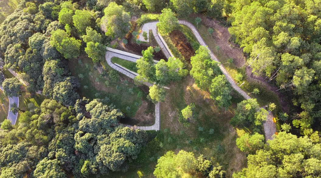 公園在不破壞原有荔枝林的基礎上,利用場地高差,設置山林石徑登山道,供人鍛煉,在山體較平緩處設置山間休憩平台,為遊人提供靜謐的交流場所,即使在盛夏,遊人在密林下也能感受習習涼風及山林間野趣的自然意境。