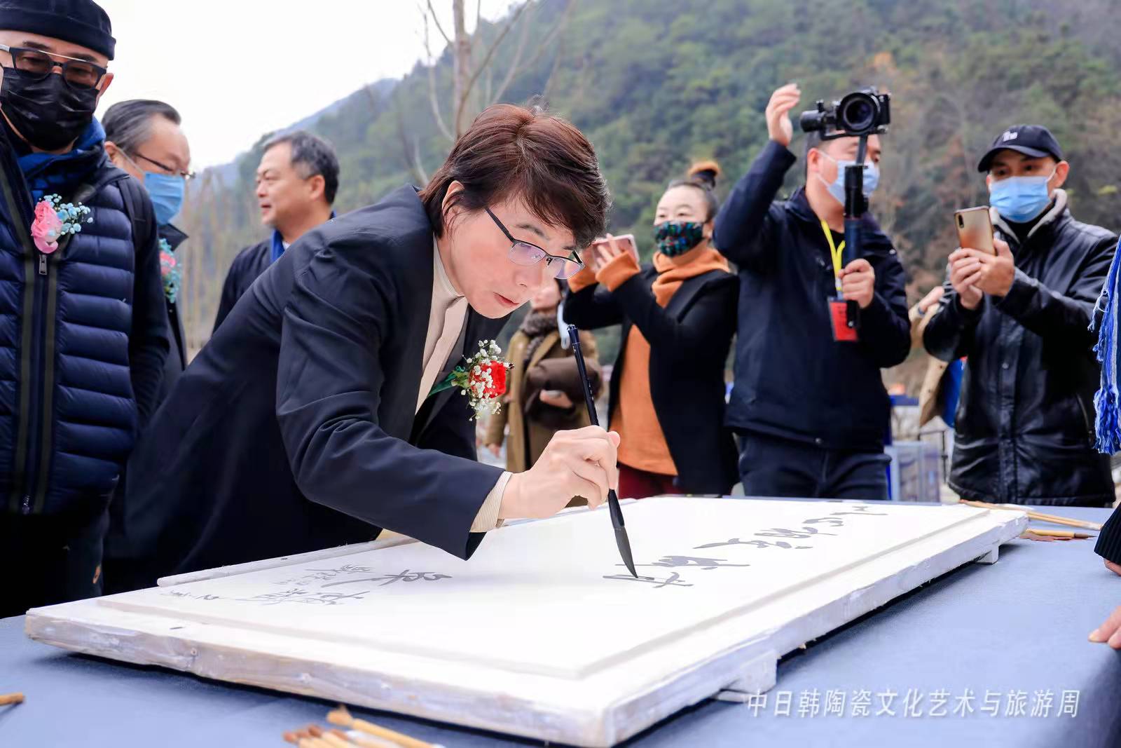 12月16日上午,著名旅日書法藝術家、日中青少年交流協會會長、日中書法協會會長熊峯在陶溪川天工開物多功能廳為景德鎮市文藝工作者、僑界人士和僑界藝術家代表們帶來了一場主題為“漢字聯接世界”的講座。冀望通過三國書法家對漢字的交流和探索,進一步推動江西景德鎮與東亞國家、城市的藝術交流,推進東亞文化的繁榮和發展。景德镇市委常委、市委宣傳部部長林蓉,副市長徐輝,市僑聯黨組書記、主席鄭鐵,市文廣新旅局二級調研員彭春文,陶邑文化發展有限公司總經理剛好等出席講座活動。